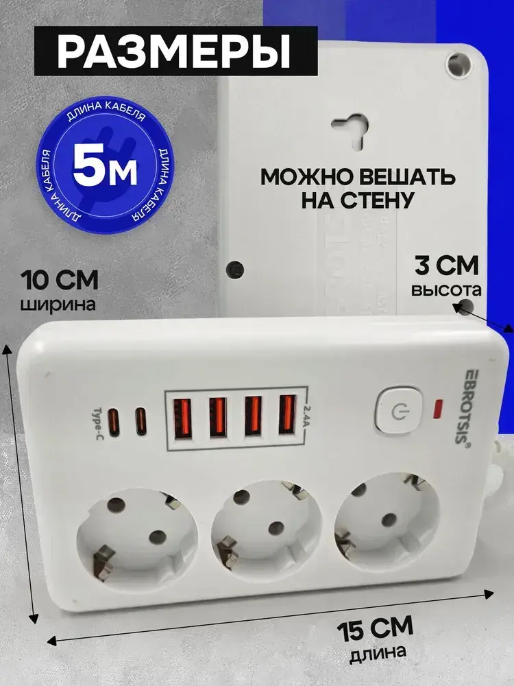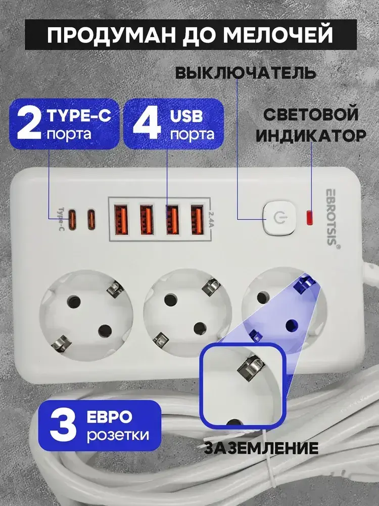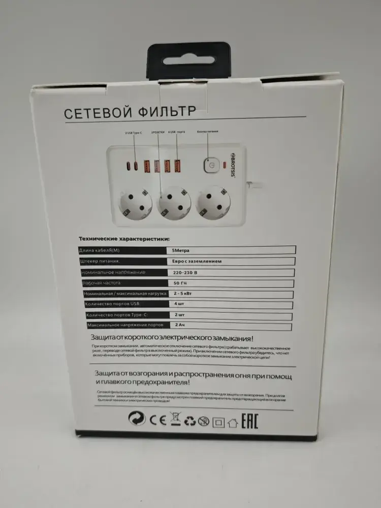 Сетевой фильтр Artdem удлинитель сетевой 5м, с предохранителем, 4000 Вт, 5 метров, 3 розетки