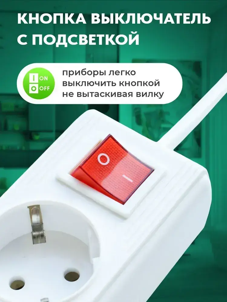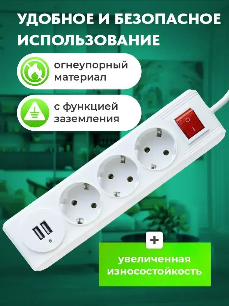 Сетевой фильтр бытовой, удлинитель электрический EXEL, 3 розетки с заземлением с выключателем и USB, 5 метров, 16А
