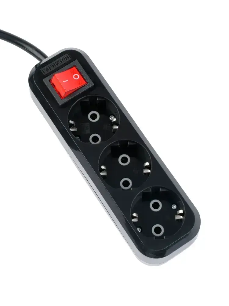 Сетевой фильтр Гарнизон с базовой защитой с заземлением с выключателем 3 розетки, 16А, 10 метров черный EPB-G3-16-B-10