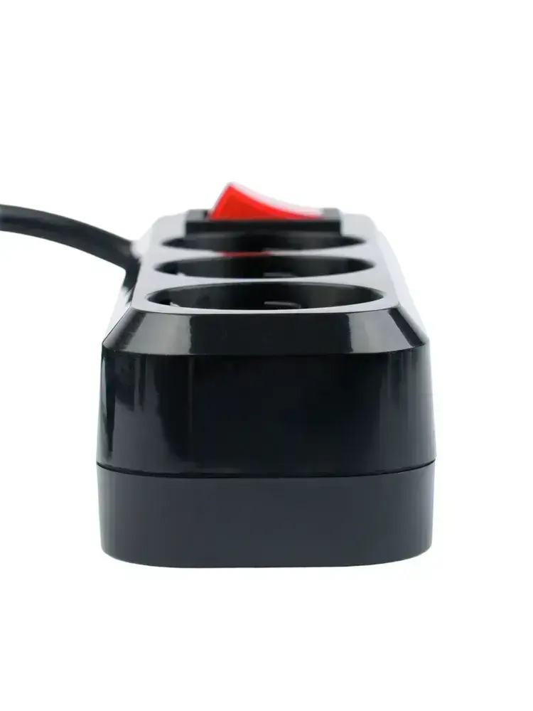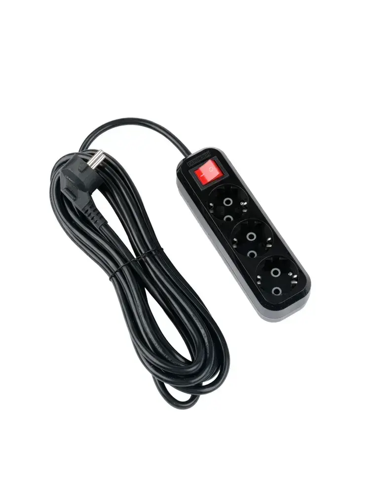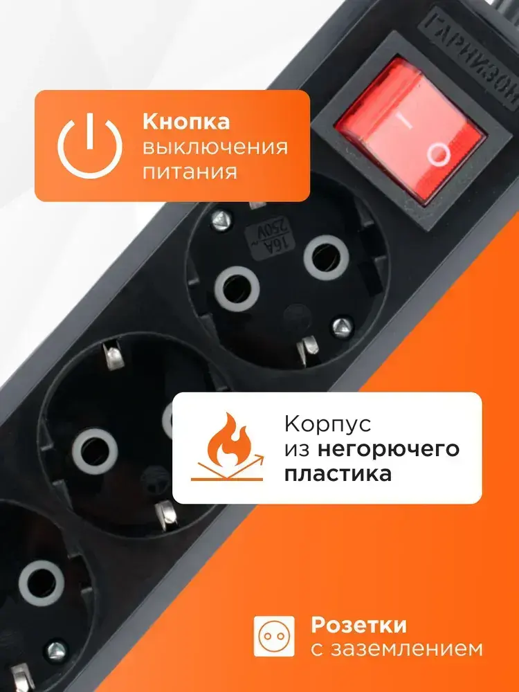 Сетевой фильтр Гарнизон с базовой защитой с заземлением с выключателем 3 розетки, 16А, 5 метров черный EPB-G3-16-B-5
