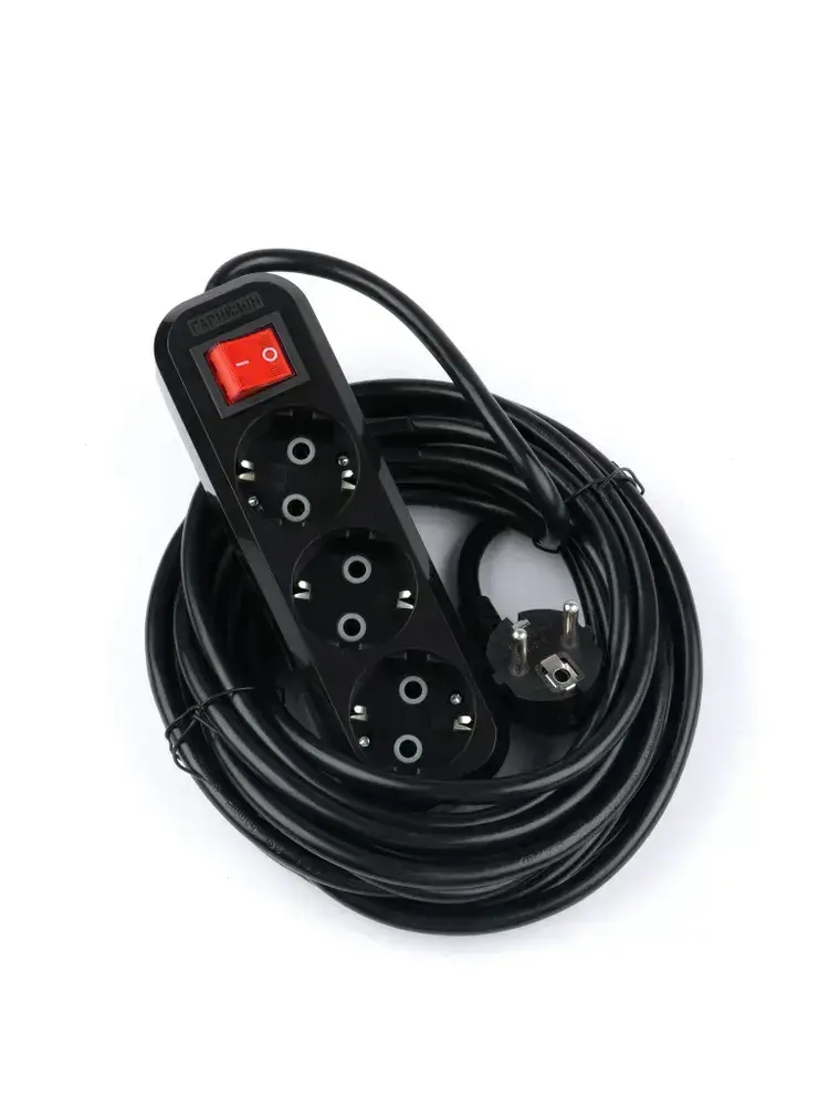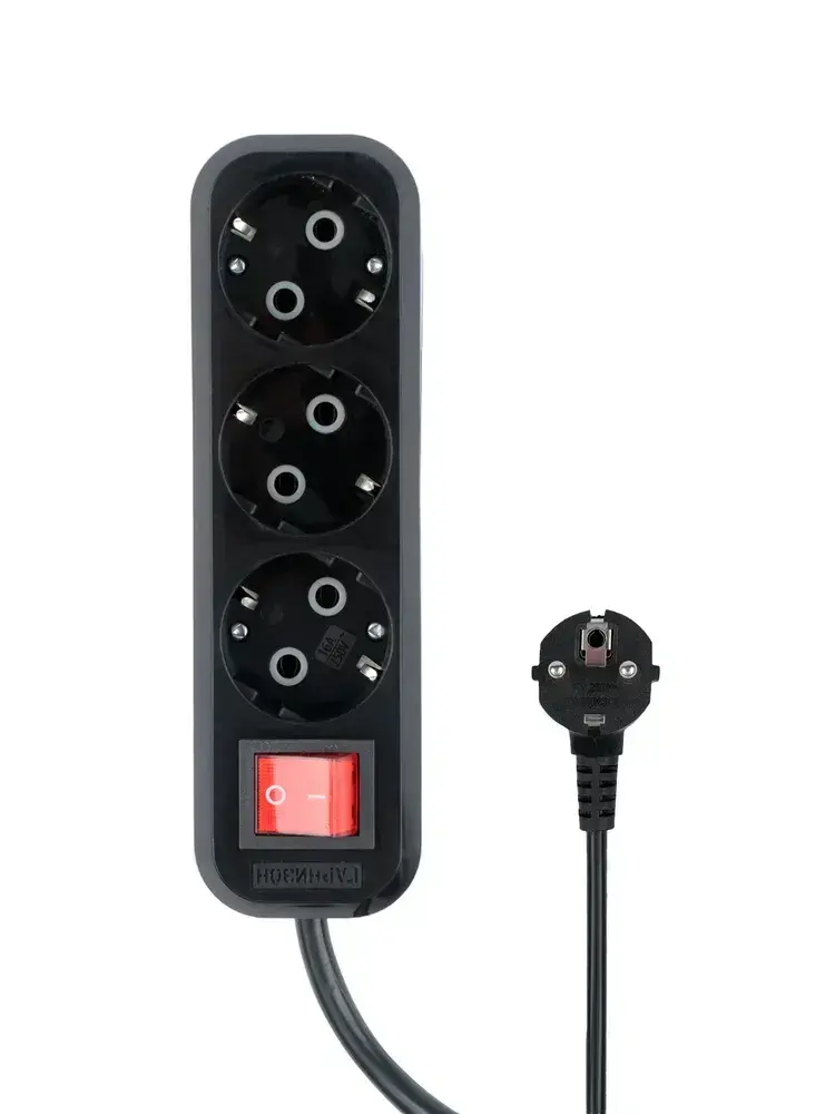 Сетевой фильтр Гарнизон с базовой защитой с заземлением с выключателем 3 розетки, 16А, 7 метров черный EPB-G3-16-B-7