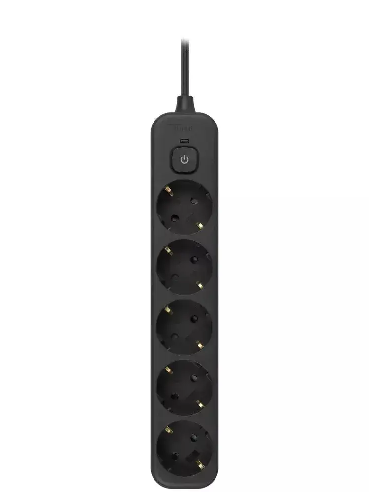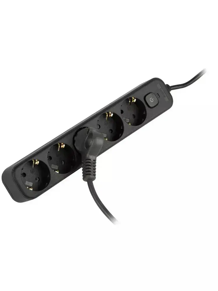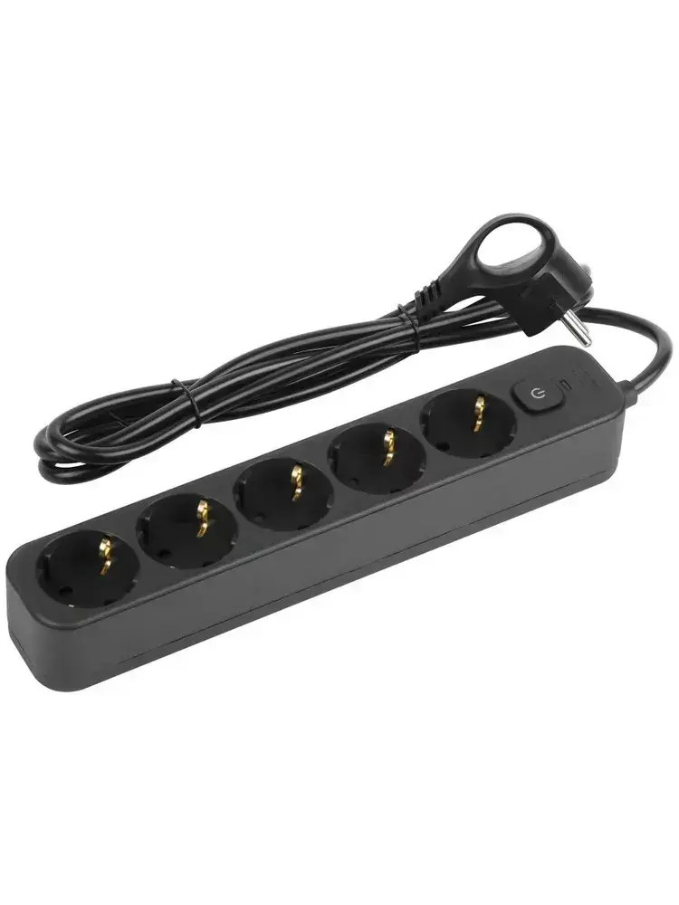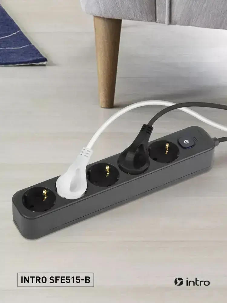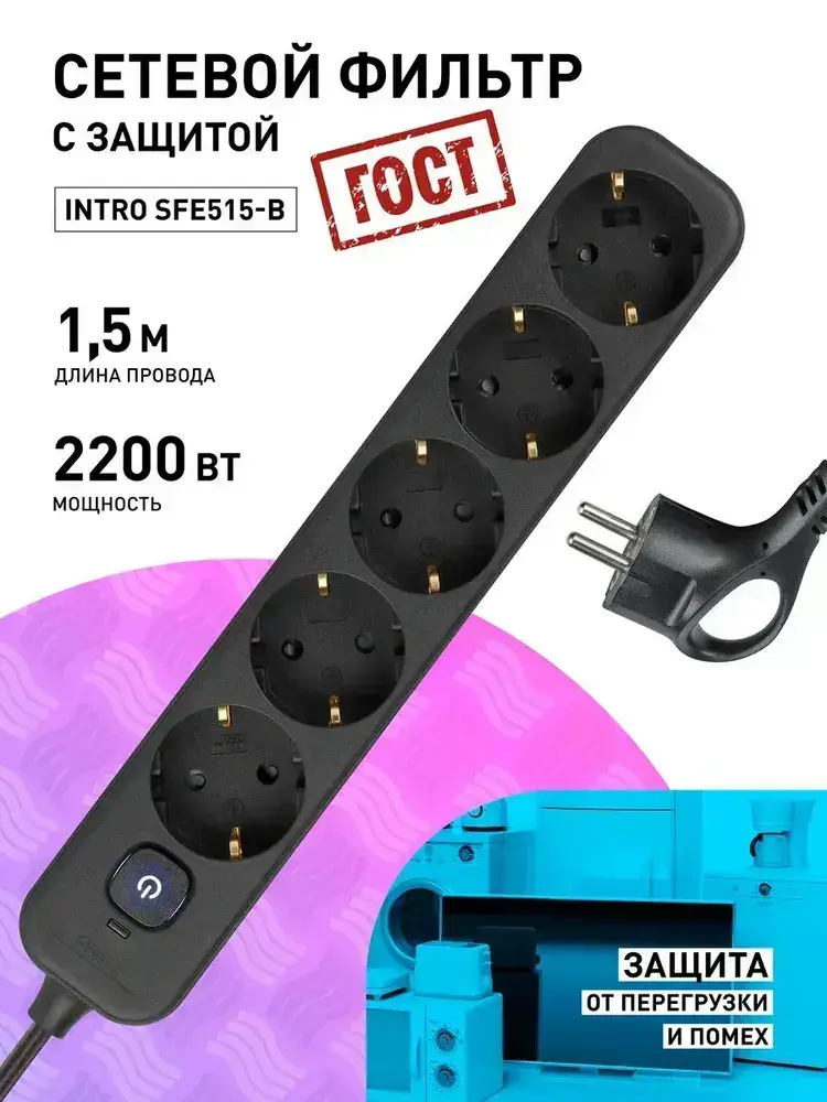 Сетевой фильтр Intro SFE515-B с базовой защитой с заземлением с выключателем 5 розеток 1,5м 10А черный / удлинитель сетевой 1,5м