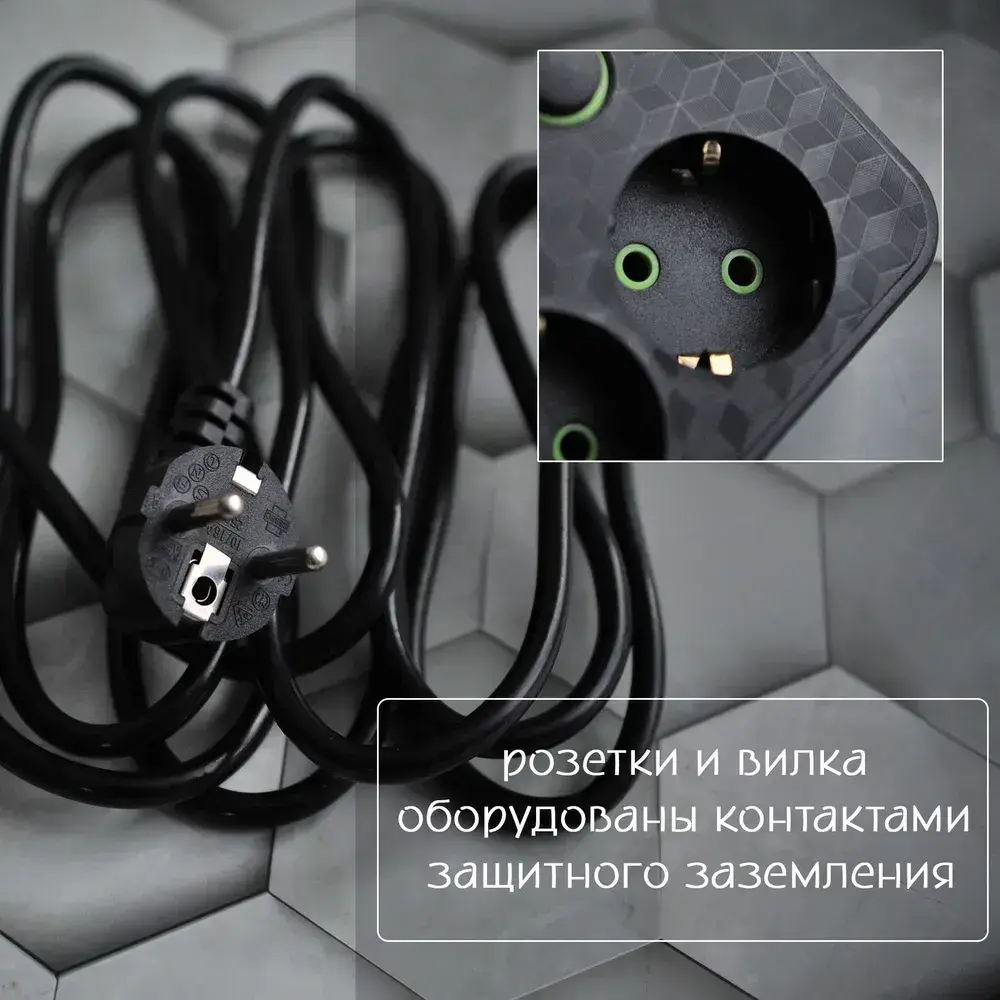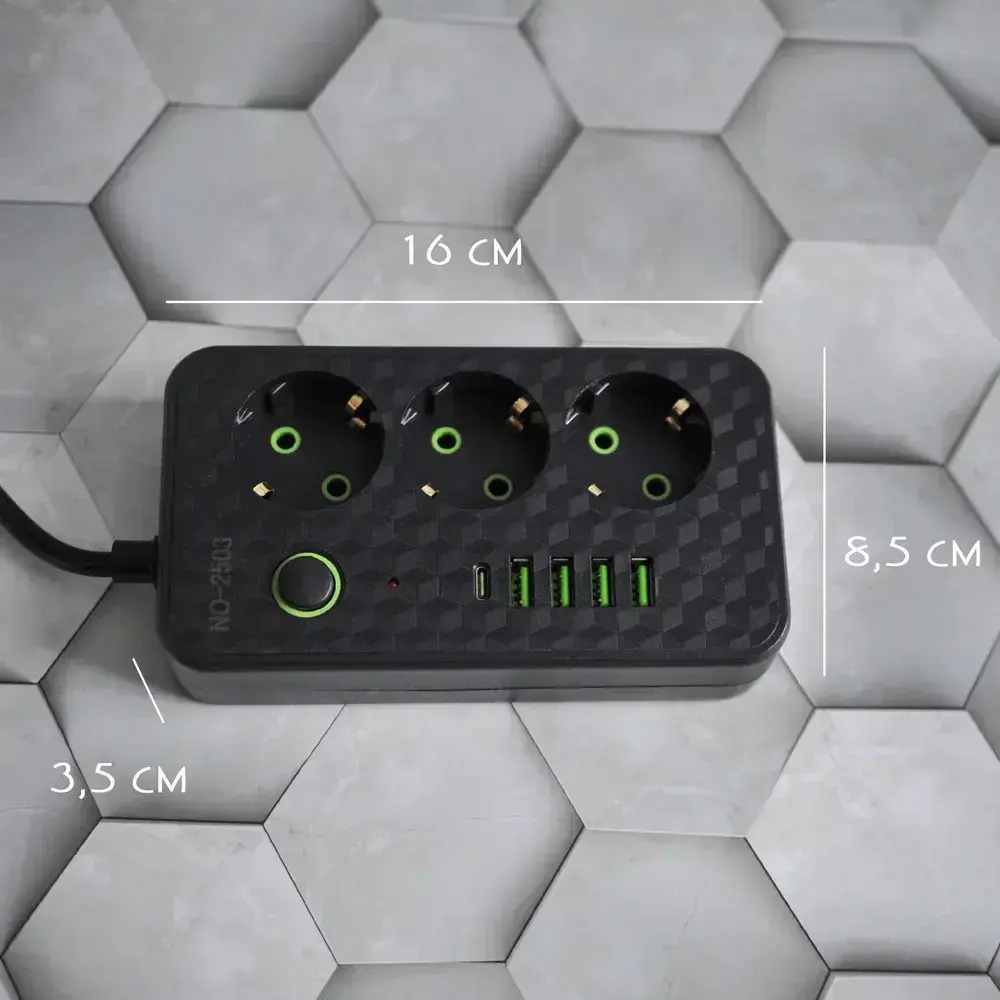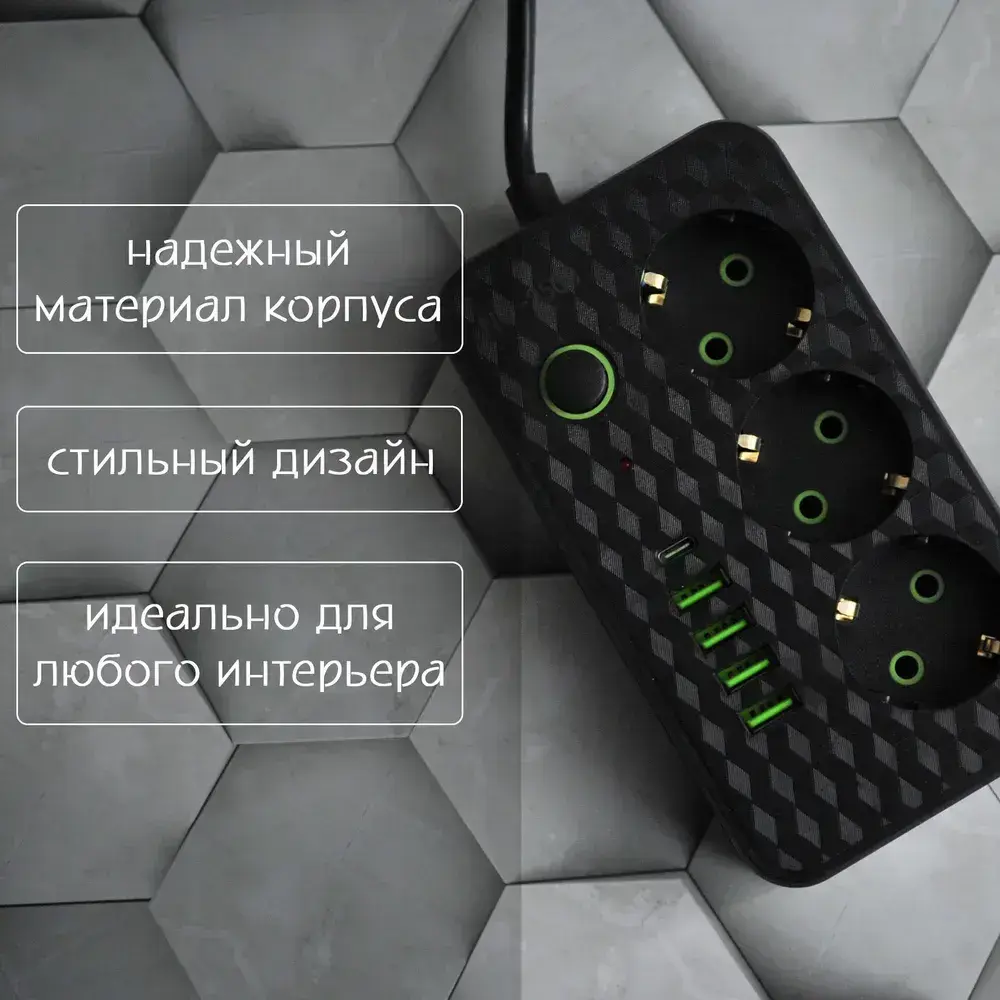 Сетевой фильтр с 2 USB-портами, 1 Type-C,3 розетки