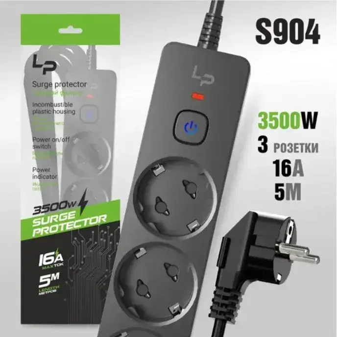Сетевой фильтр-удлинитель Live-Power LP5105 3 розетки, С/З 16А с выключателем, 5м, черный