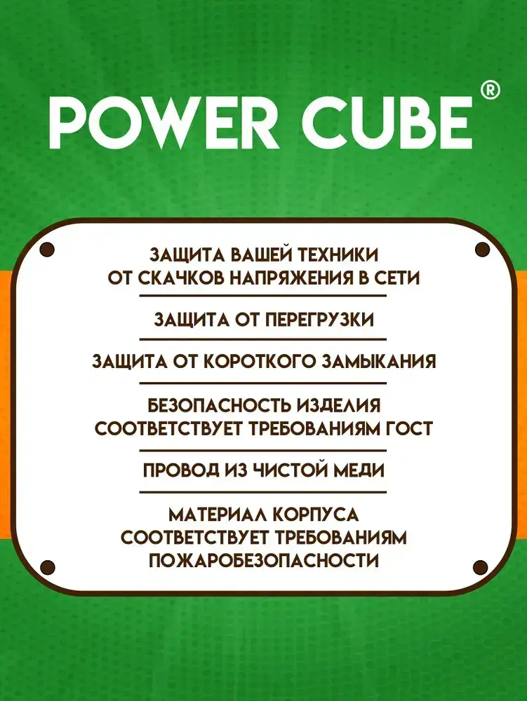 Сетевой фильтр удлинитель Power Cube "КУБ", 6 розеток, чёрный, 16А, 3500Вт, Длина 5 м