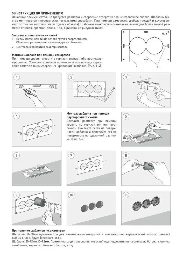 Шаблон для подрозетников 68 мм комплект шаблонов для сверления подрозетников Новый дизайн