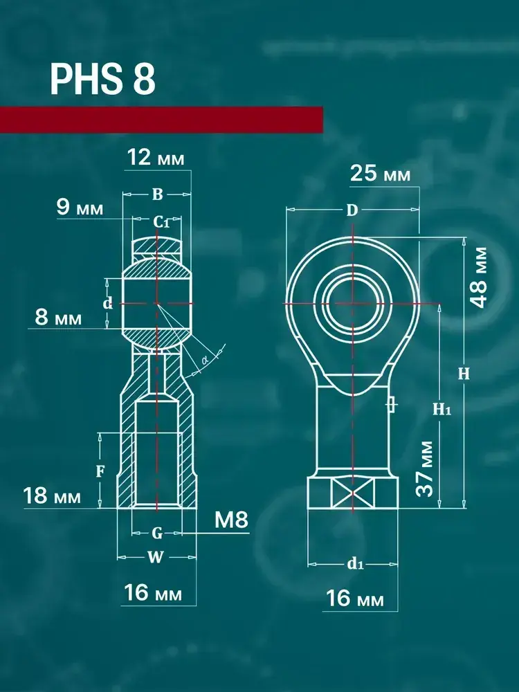 Шарнирная головка PHS8, правая внутренняя резьба М8