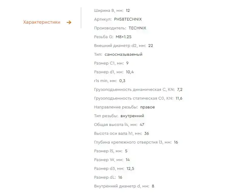 Шарнирный наконечник PHS8 TECHNIX (правая резьба)
