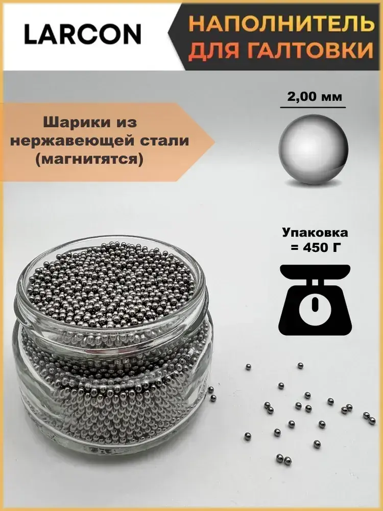 Шары из нержавеющей стали AISI 420, наполнитель для галтовки, Ф-2,0 мм, пакет - 450 гр