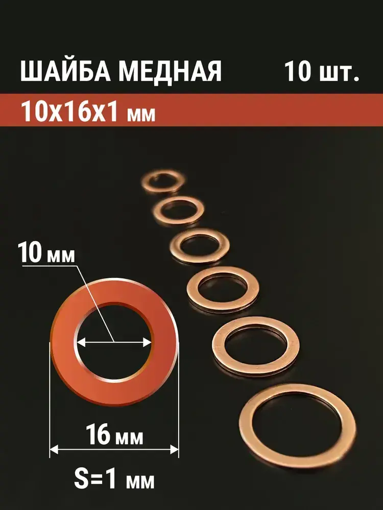 Шайба медная 10х16х1, 10 шт. (прокладка медная)