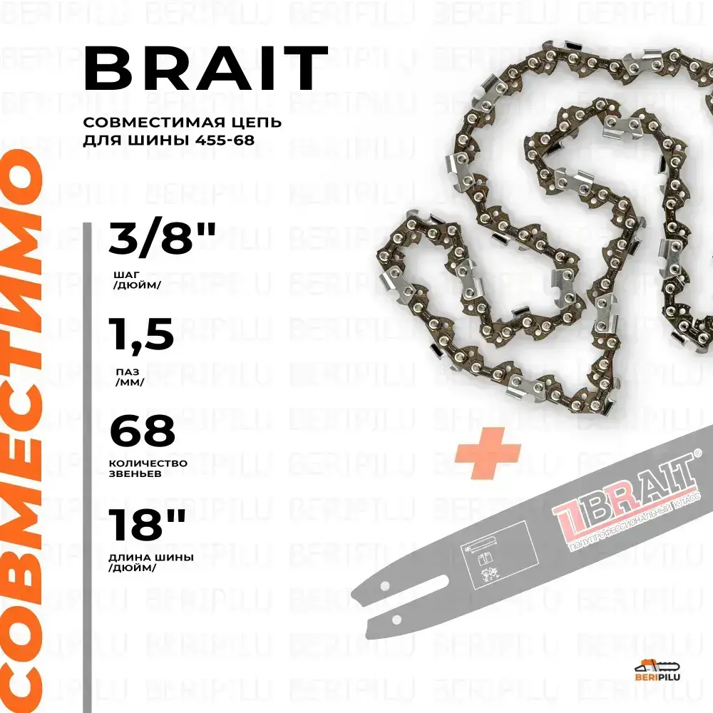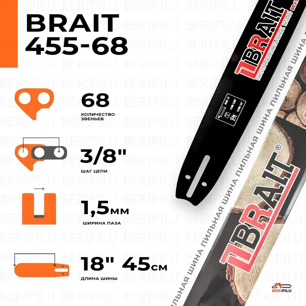 Шина для бензопилы HUSQVARNA 365, паз 1.5 мм, 68 звеньев, шаг 3/8", шина 18" (45см)