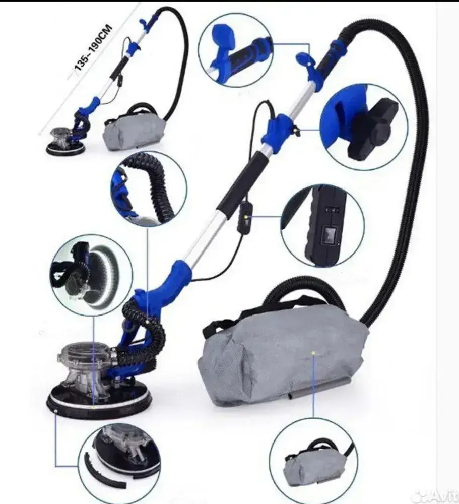 Шлифовальная машина для шлифовки стен и потолка со встроенным пылесосом VASSER PRO ЖИРАФ c LED подсветкой Мощность 1250w
