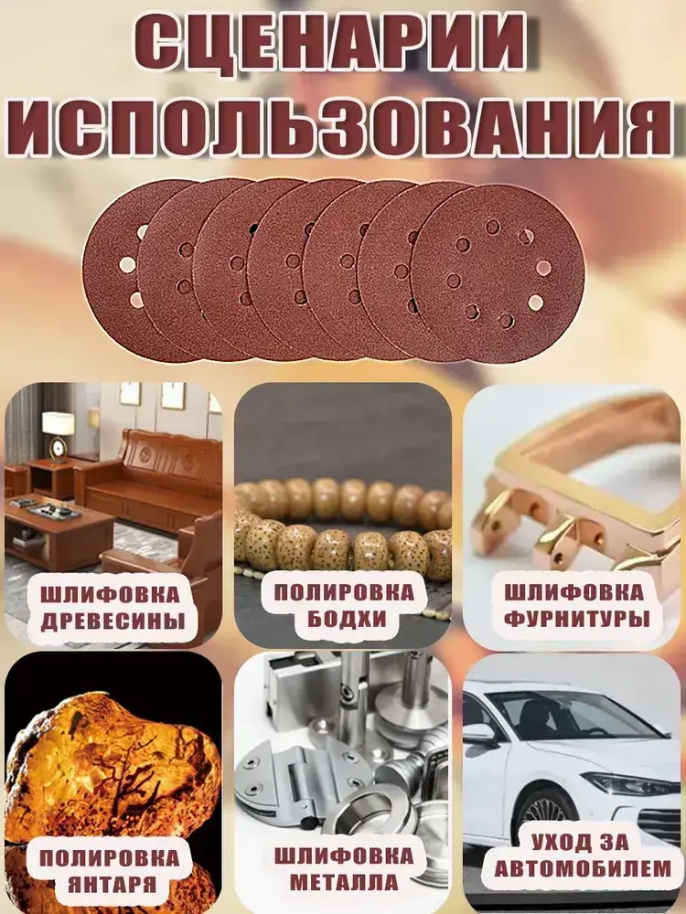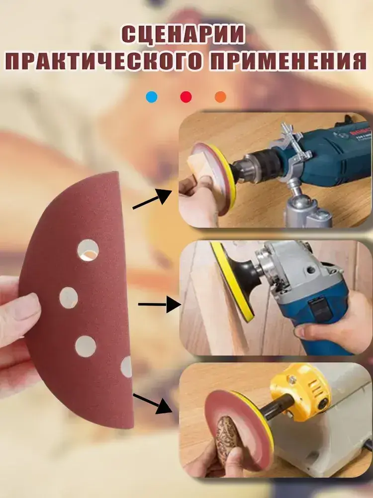 Шлифовальные круги 125мм на липучке P80 P180 P240 P320 P400 P800 P1000 P1500 P2000 P3000. самозацепляющийся с отверстиями 120 штук набор инструменты