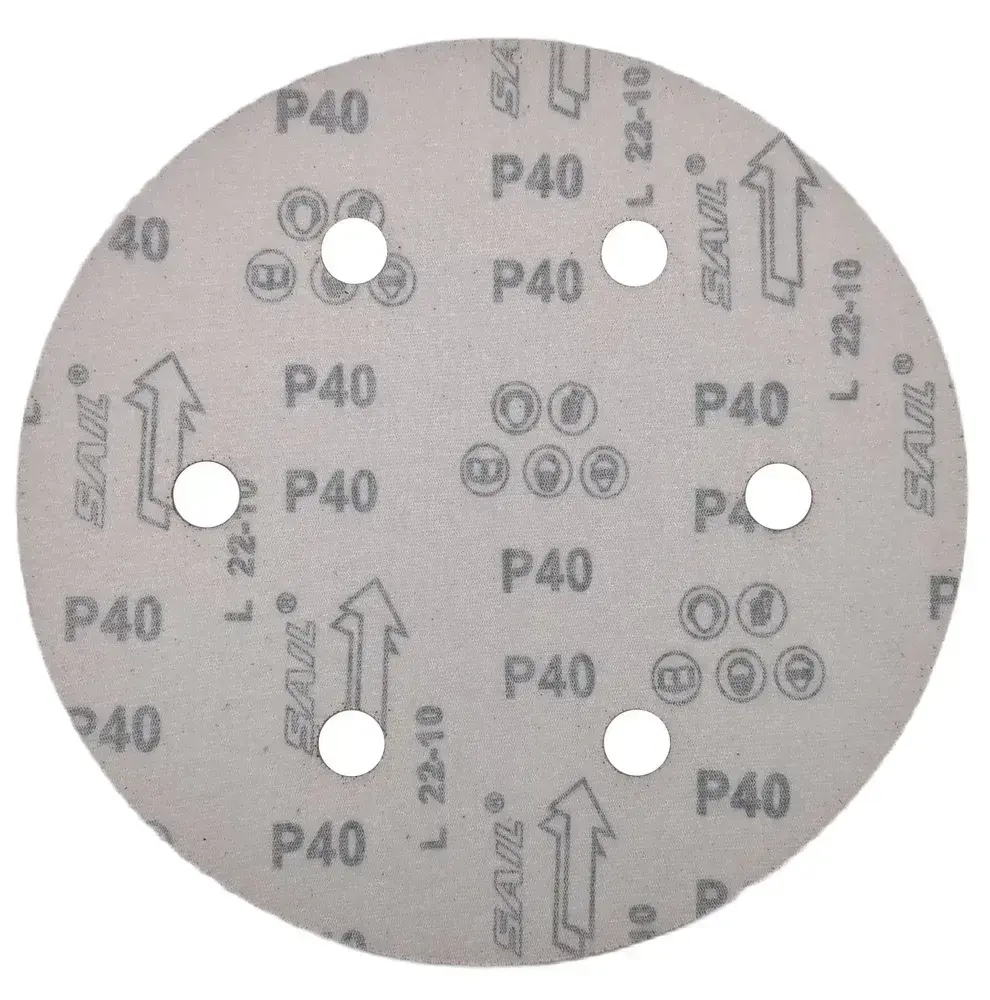 Шлифовальные круги 225 мм на липучке 10шт Р40, 6 отверстий / шлифовальные диски 225 для жирафа