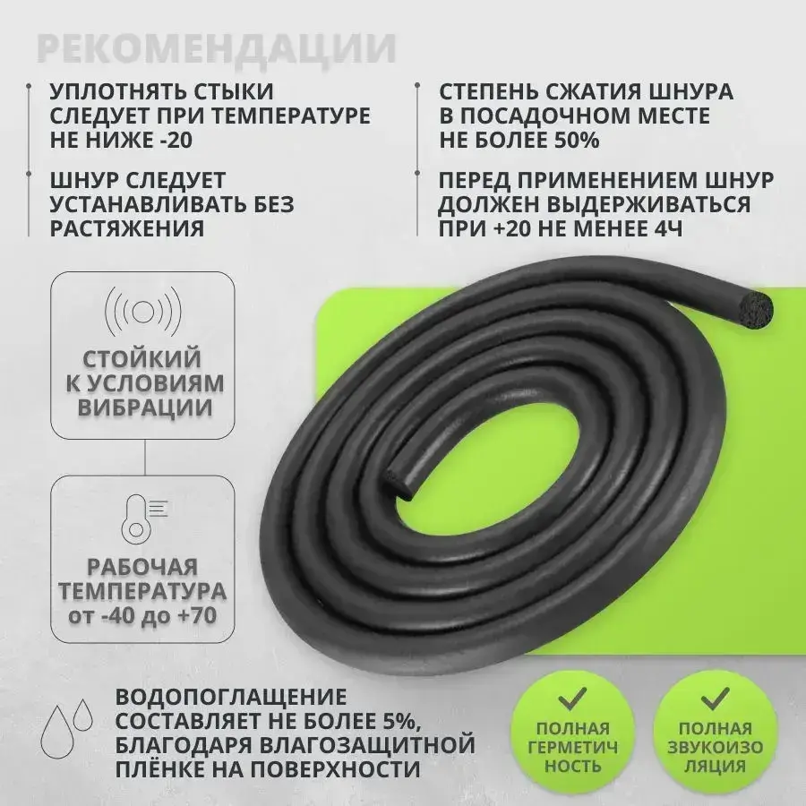 Шнур пористый для уплотнения универсальный Гернит 8 мм-7 м