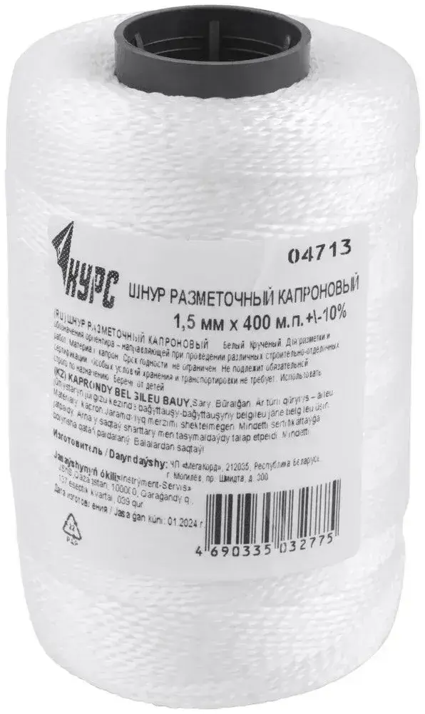 Шнур разметочный 1,5 мм х 400 м капроновый крученый, белый