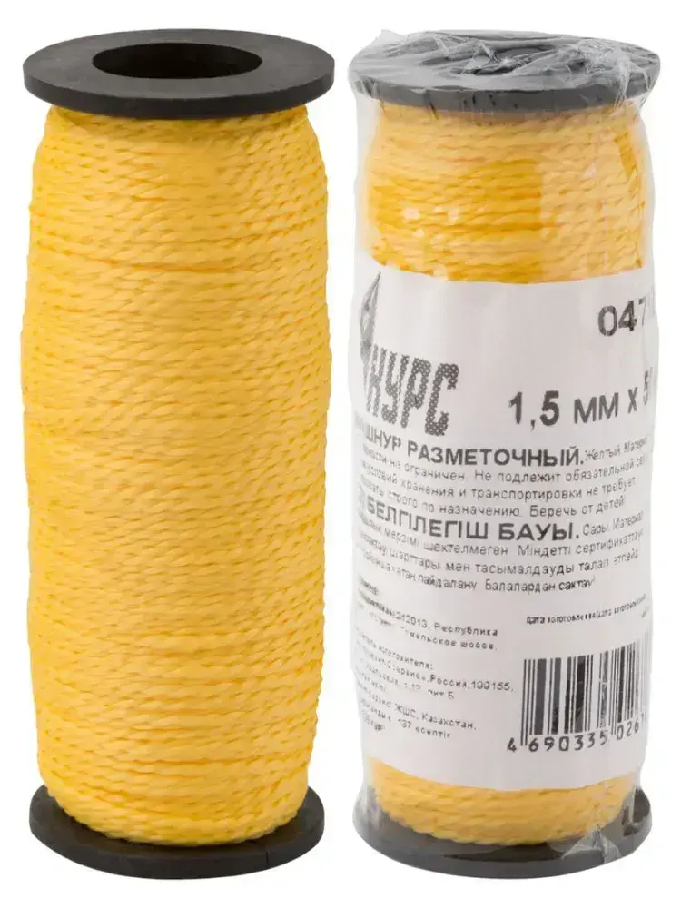 Шнур разметочный 1,5 мм х 50 м строительный капроновый крученый, желтый