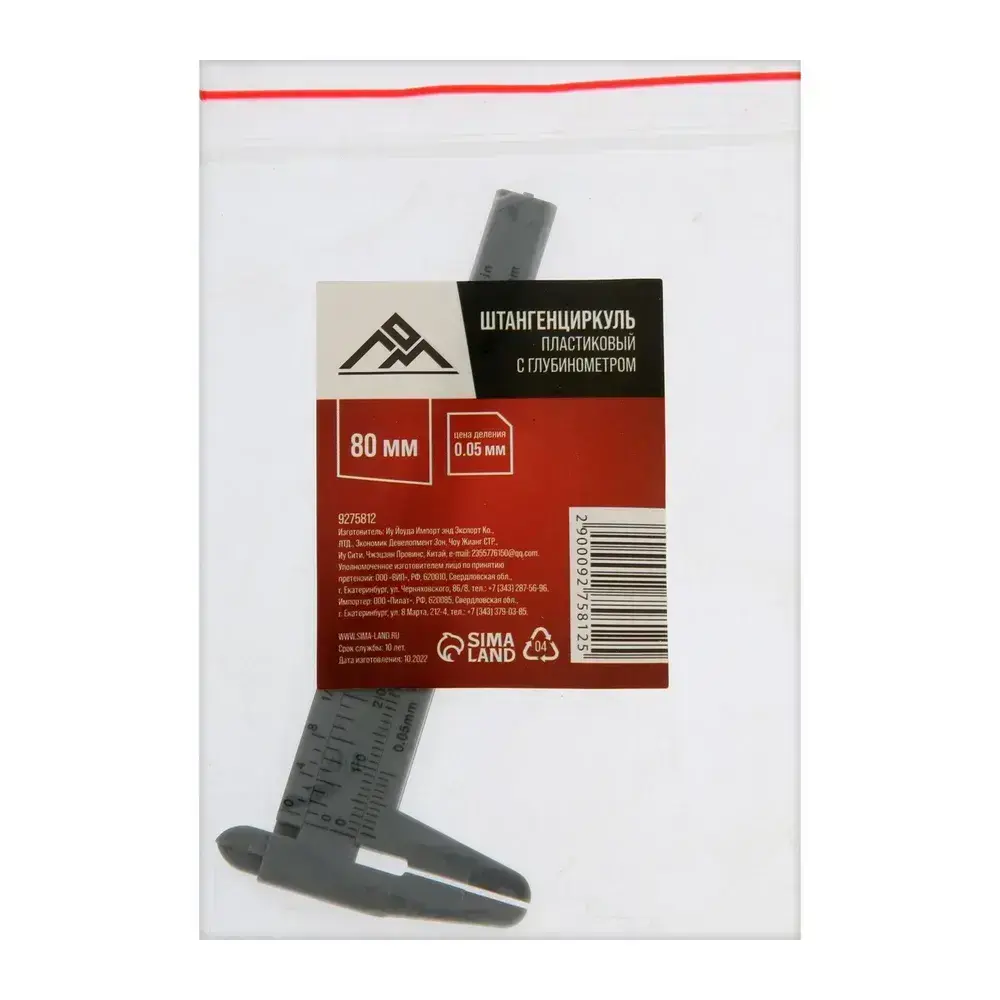 Штангенциркуль ЛОМ, с глубинометром, цена деления 0.05 мм, пластиковый, 80 мм