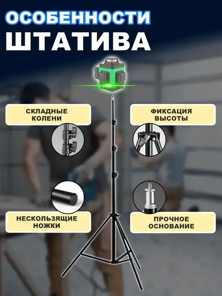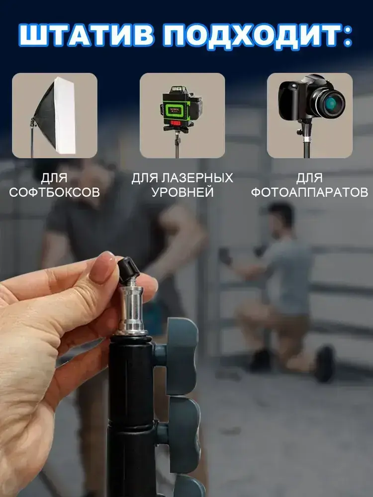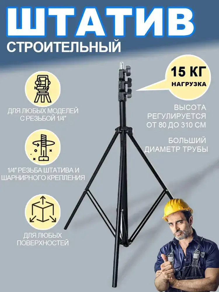 штатив для лазерного уровня Напольный 3м Универсальный с резьбой 1/4,Для лазерного уровня,фотоаппарата, кольцевой лампы, проекторов . 81-300 см