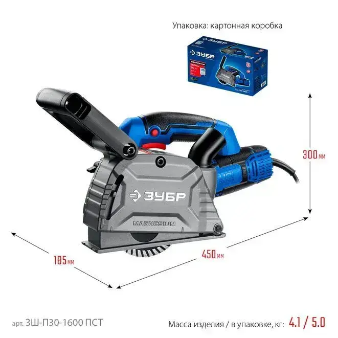 Штроборез (бороздодел), Профессионал ЗУБР d 125 мм, 1600 Вт, 30 мм (ЗШ-П30-1600 ПСТ)