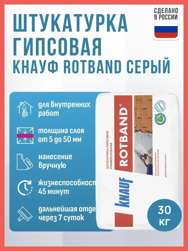 Штукатурка гипсовая KNAUF Rotband серый 30кг / Штукатурка гипсовая Кнауф Ротбанд серый 30кг