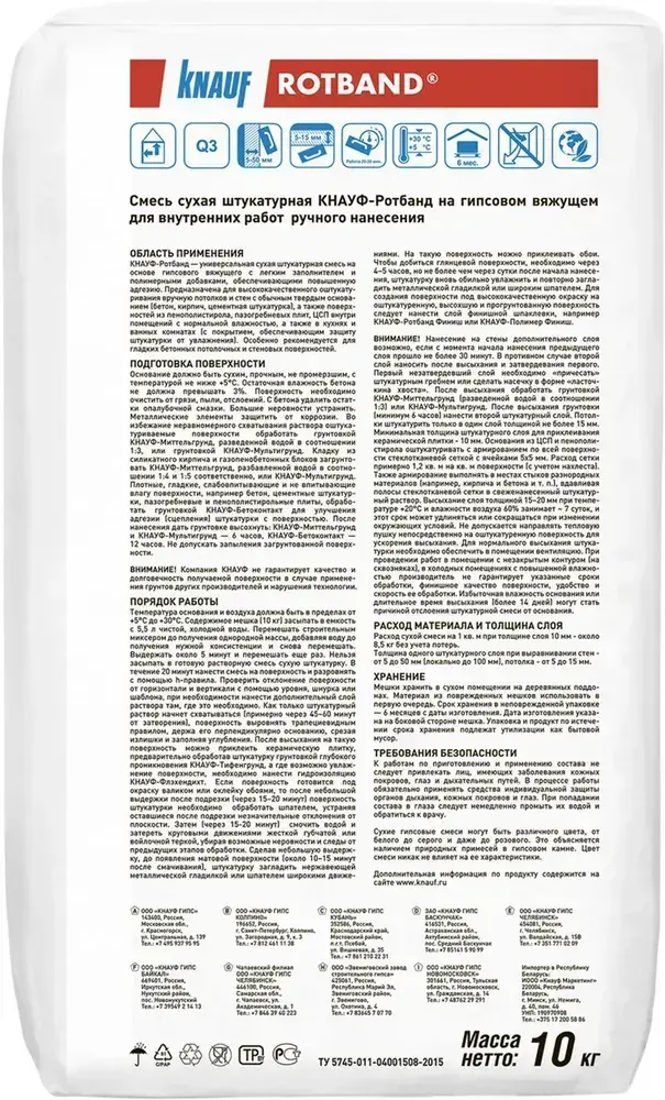 Штукатурка универсальная гипсовая KNAUF ROTBAND серая 10 кг