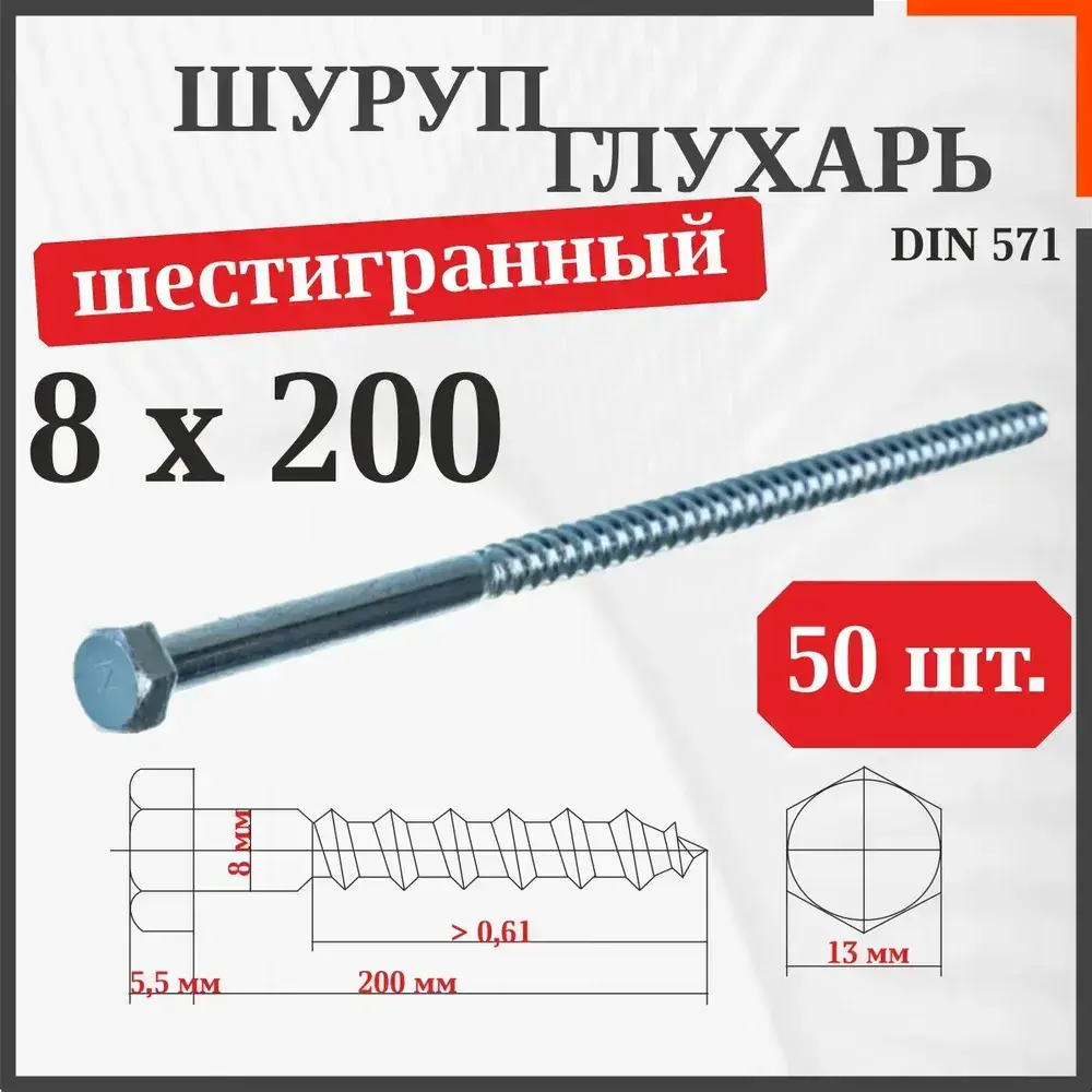 Шуруп-болт (Саморез/Глухарь) 8 х 200 мм 50 шт