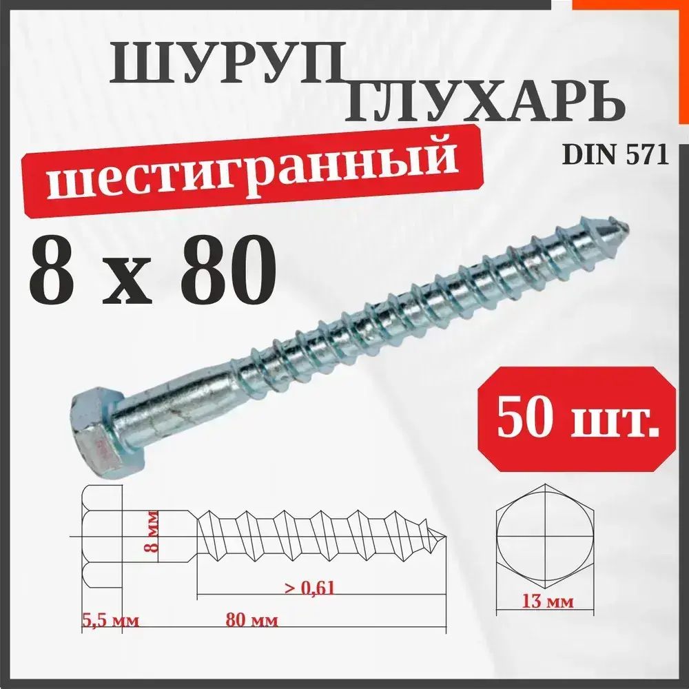 Шуруп-болт (Саморез/Глухарь) 8 х 80 мм 50 шт