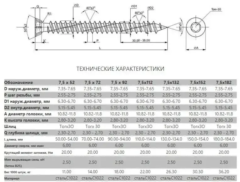 Шуруп по бетону / кирпичу 7,5 х 202 мм 10 шт Oklent, нагель, саморез, анкер по бетону