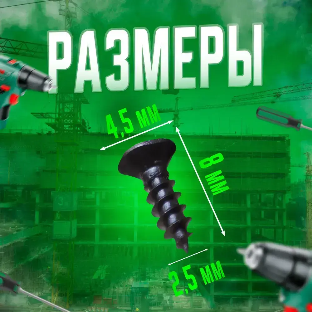 Шуруп - саморез 2,5*8мм декоративный (цвет - черный) - 50 штук