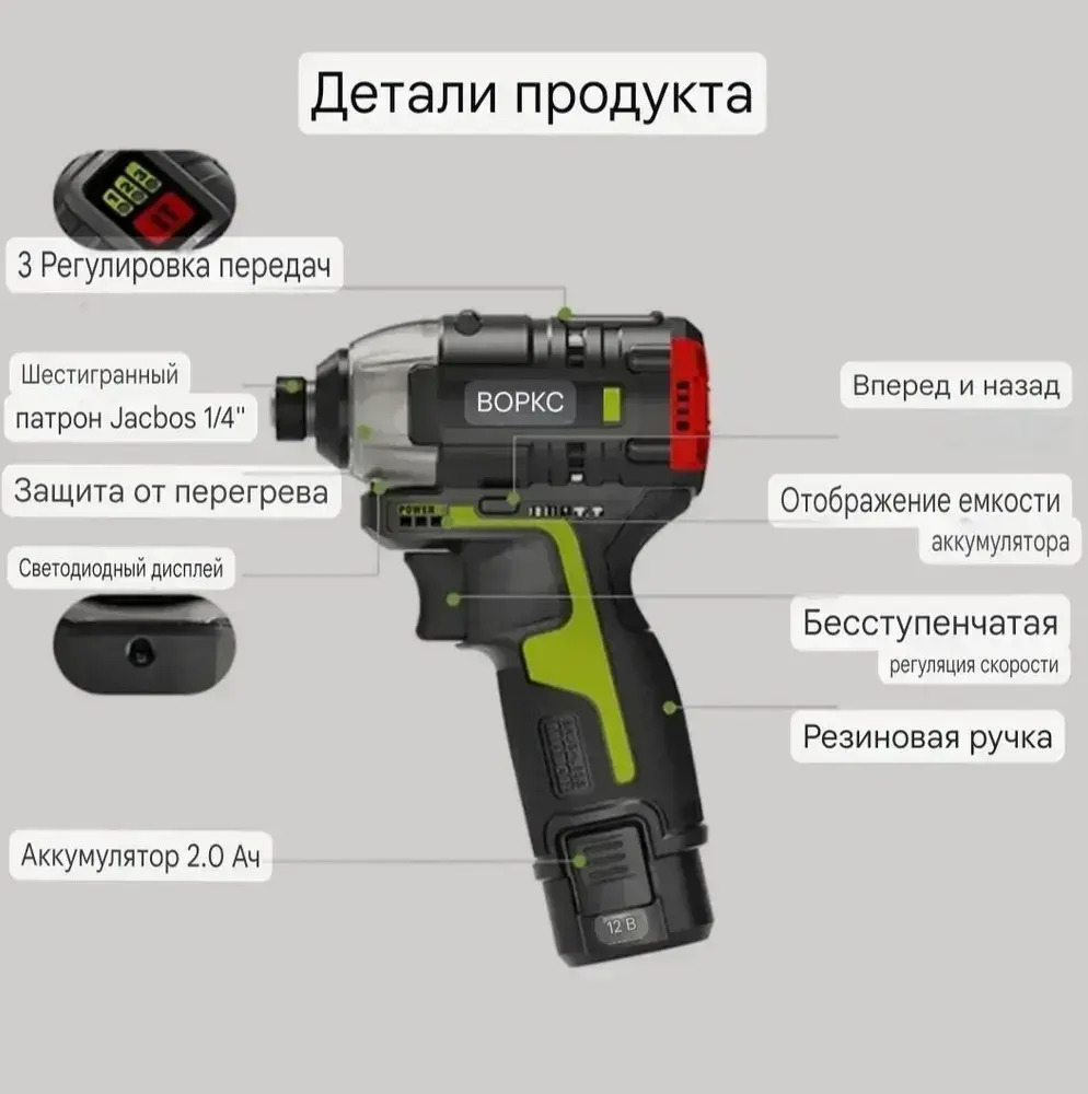 Шуруповерт, 12 В, 140 Нм, 2 АКБ