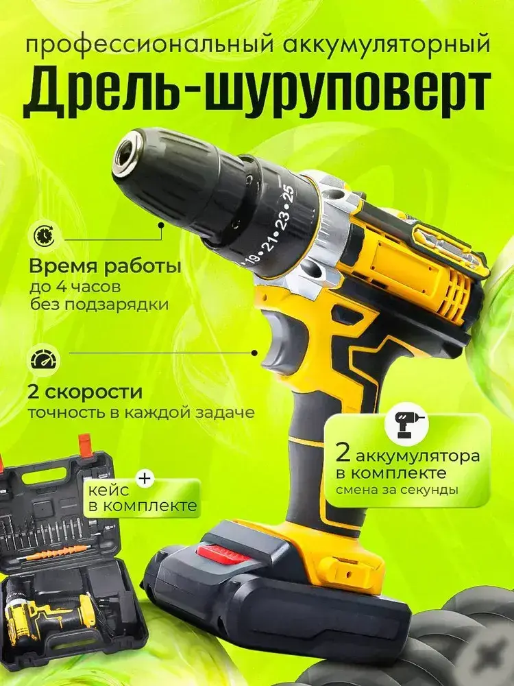 Шуруповерт, 21 В, 42 Нм, 2 АКБ