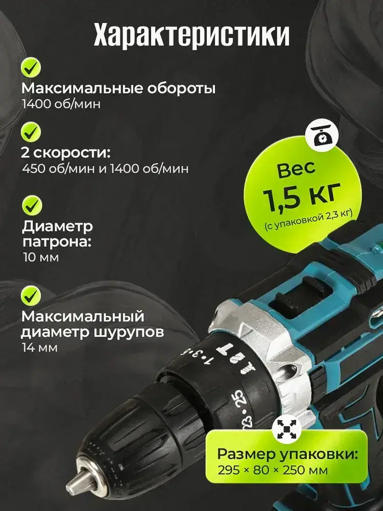 Шуруповерт, 24 В, 41 Нм, 2 АКБ