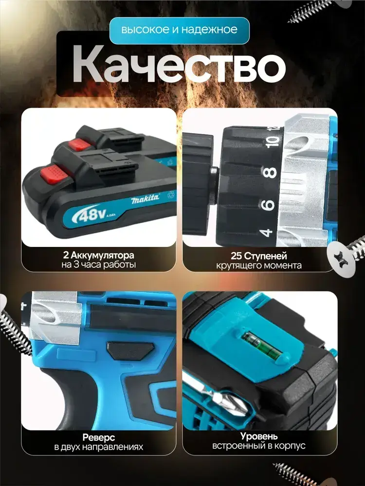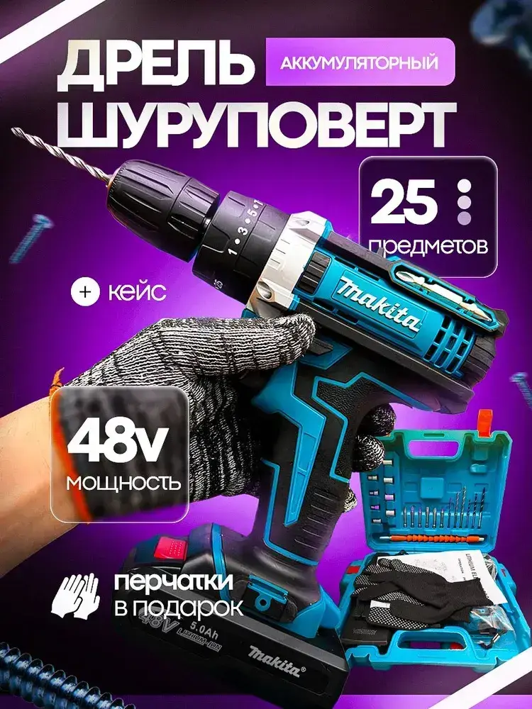 Шуруповерт, 48 В, 25 Нм, 2 АКБ