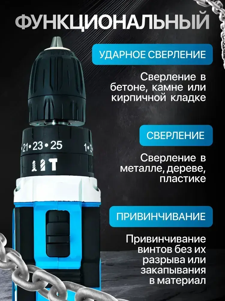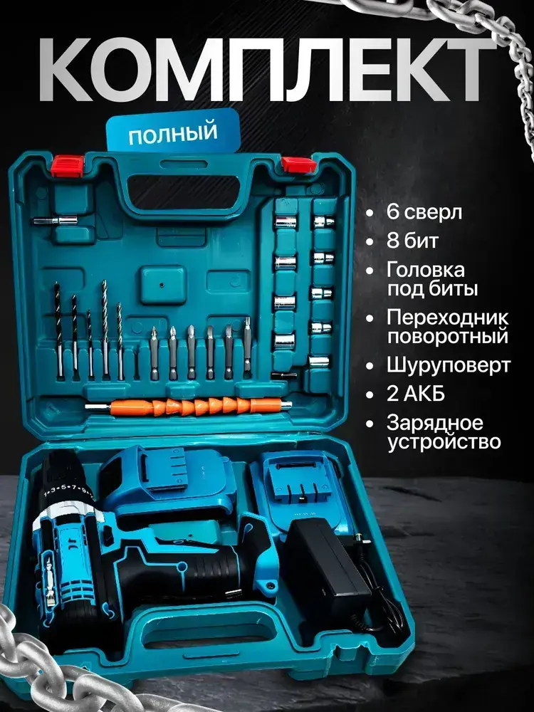 шуруповерт аккумуляторный, 2 АКБ, с кейсом