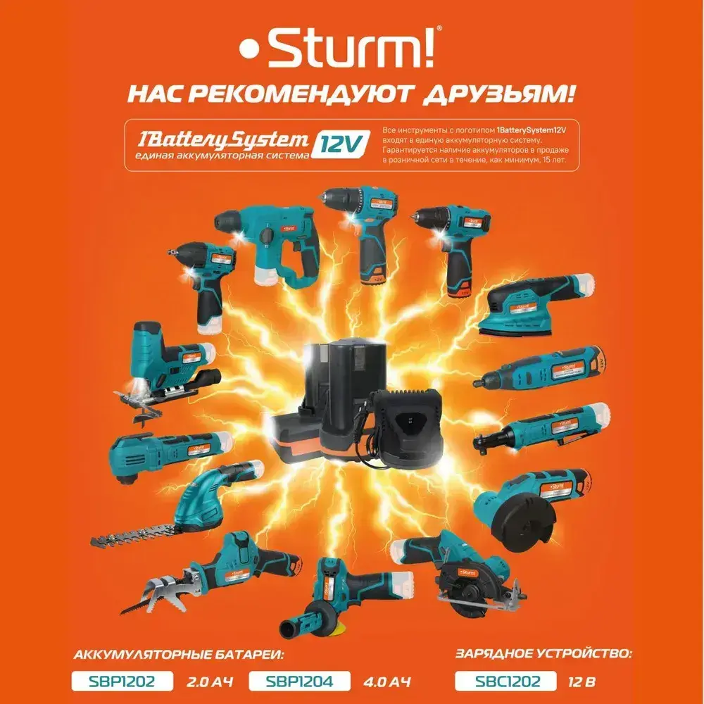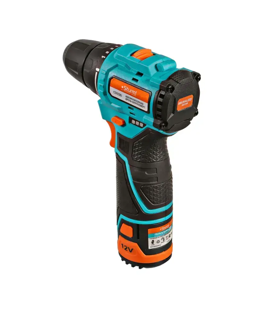 Шуруповерт аккумуляторный бесщеточный 12В, крутящий момент 35Нм, патрон 10мм, аккумулятор 2.0Ач, TYPE-C, система 1BatterySystem12V, Sturm!