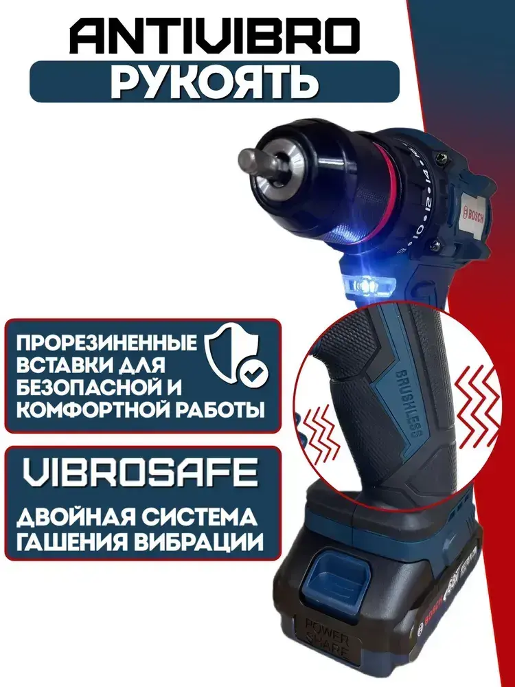 Шуруповерт аккумуляторный бесщеточный 68 Вт, дрель шуруповерт аккумуляторная 68 Вт с 2 АКБ в кейсе