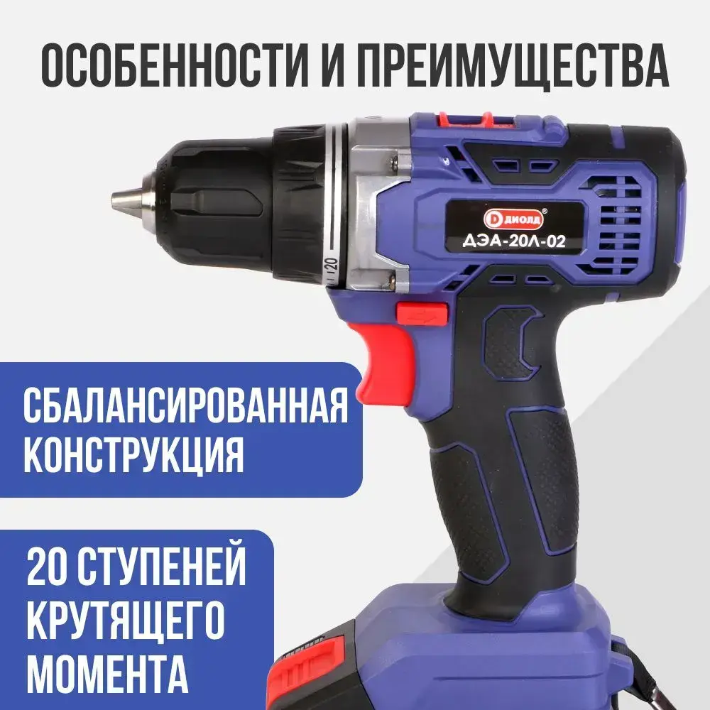 Шуруповерт аккумуляторный ДЭА-20Л-02 20В, кейс, 1 АКБ