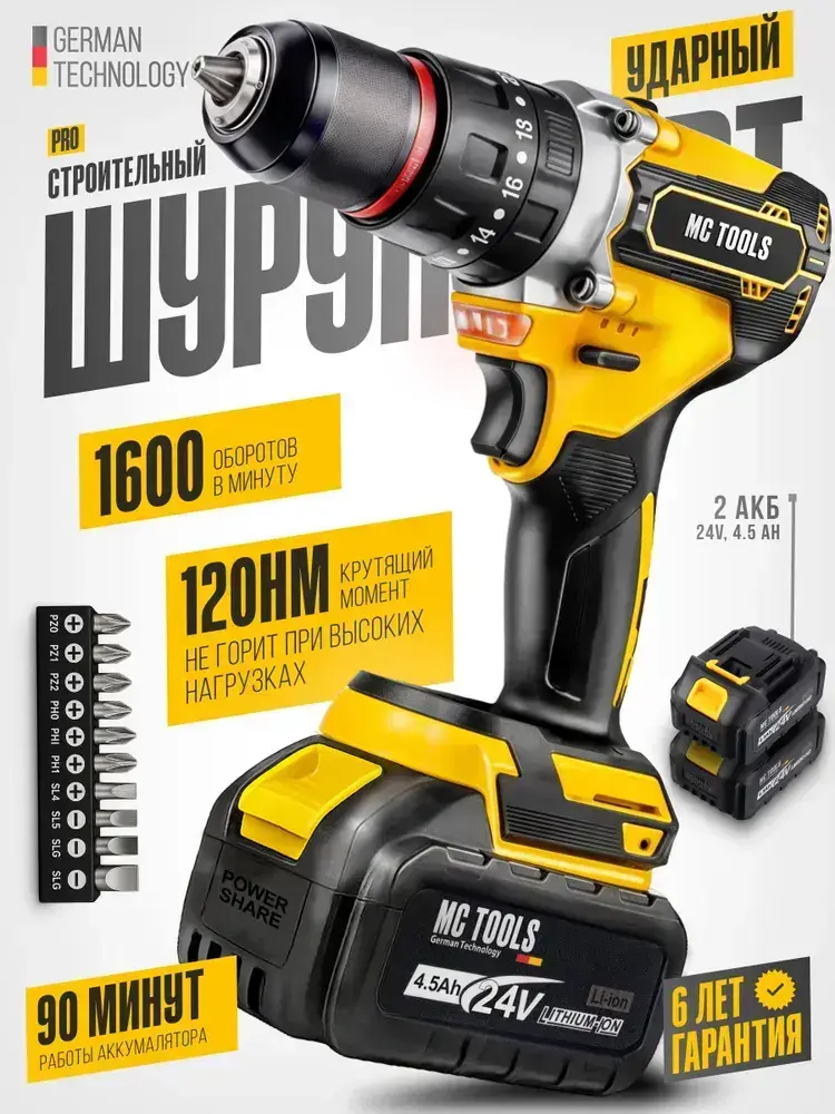 Шуруповерт аккумуляторный / Дрель шуруповерт аккумуляторный 24V, 4000 об/мин, 2 АКБ