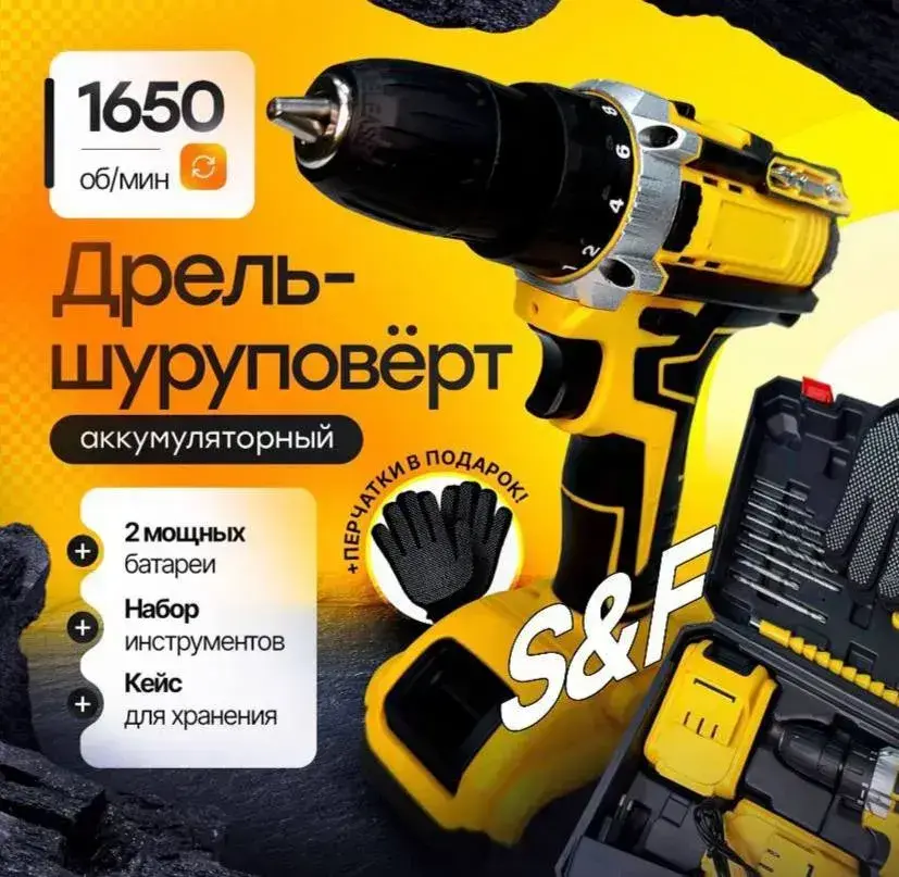 Шуруповерт аккумуляторный / Дрель-шуруповерт аккумуляторный в кейсе с набором бит и сверл