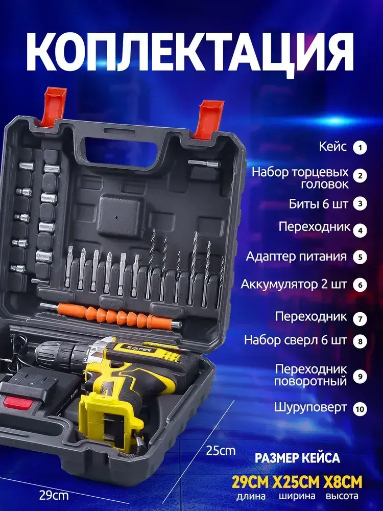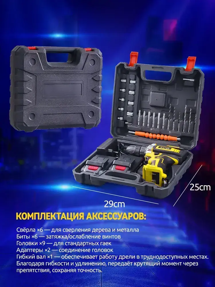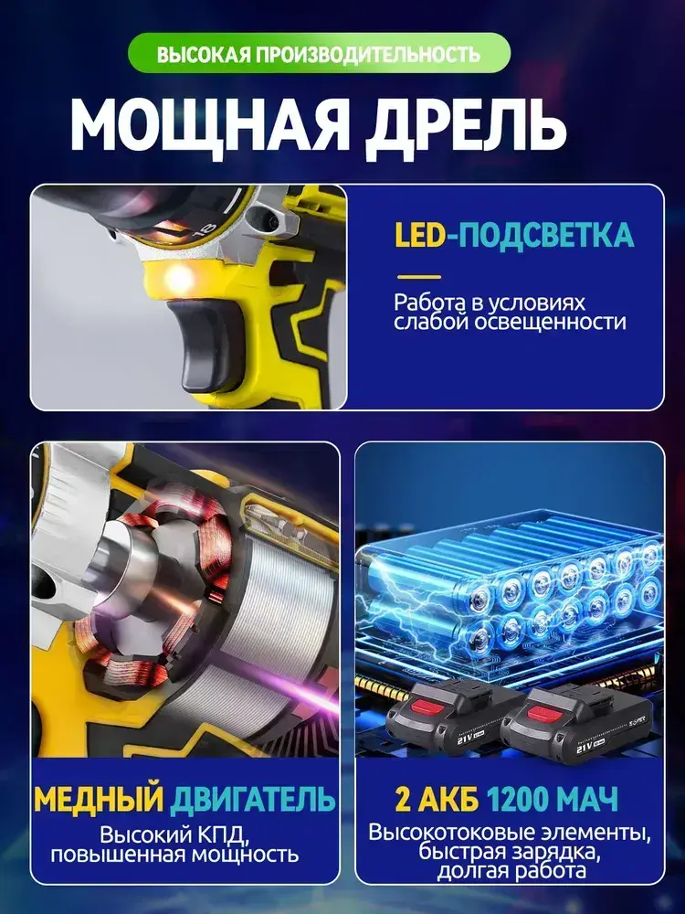 Шуруповерт аккумуляторный с режимом дрели, 2 АКБ, 21 В, 1200, 2 режима