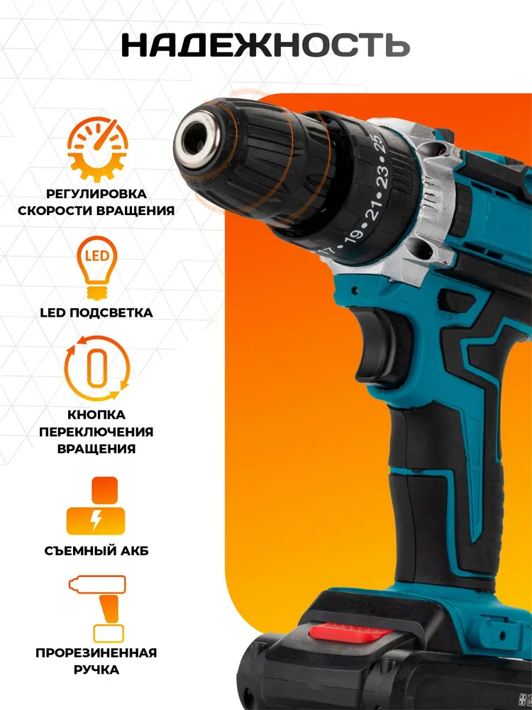 Шуруповерт аккумуляторный, шуруповерт и набор инструментов "Мастер" +2 АКБ в кейсе