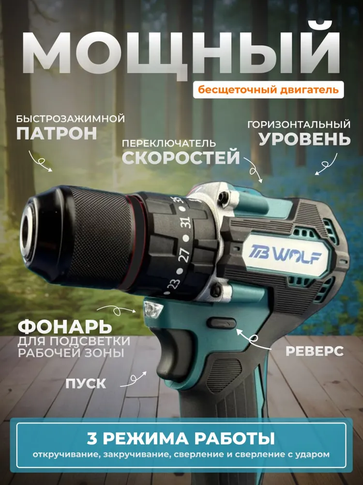 Шуруповерт аккумуляторный ударный дрель-шуруповерт от аккумулятора 2АКБ с набором инструментов