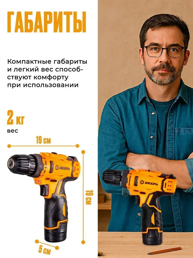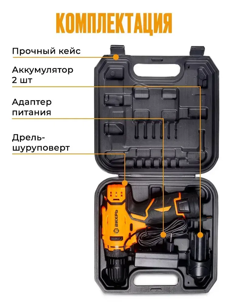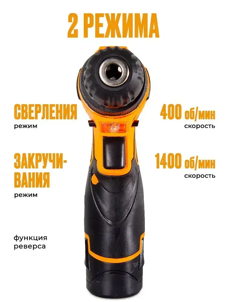 Шуруповерт аккумуляторный Вихрь (быстрозажимной, 400/1400 об/мин, 25/13 Нм, 12В, 0.96 кг) / Дрель шуруповерт ДА-12Л-2КА