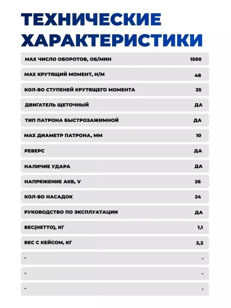 Шуруповерт дрель аккумуляторный / Ударный режим, 21W, 42Нм, 2 АКБ, кейс с аксессуарами