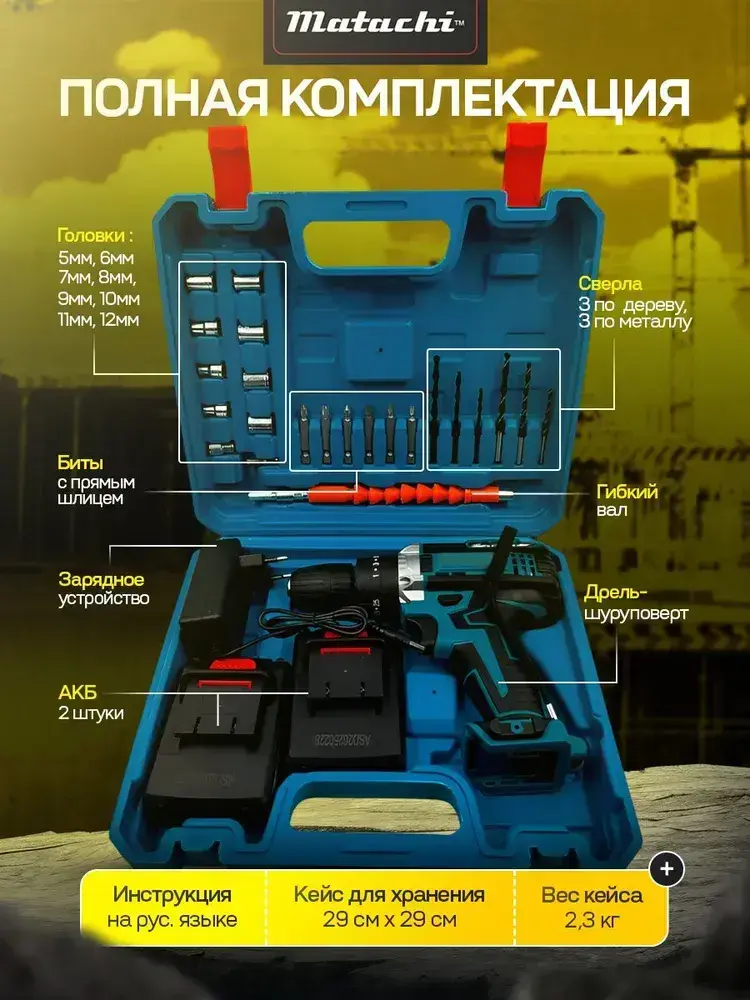 Шуруповерт - дрель ударный аккумуляторный 24v набор