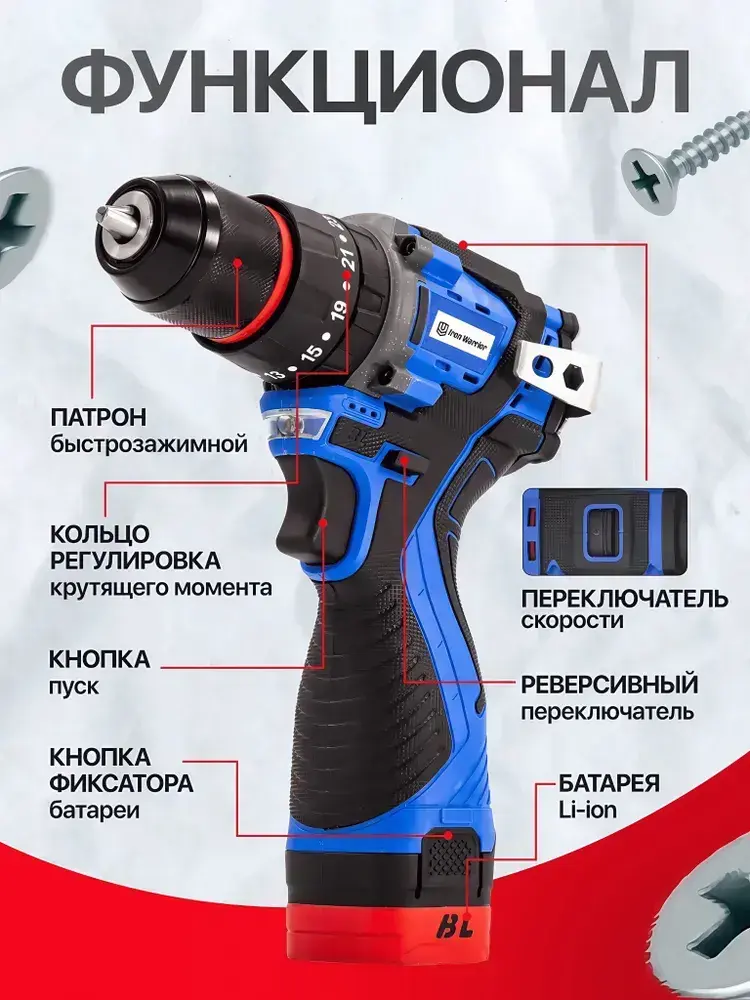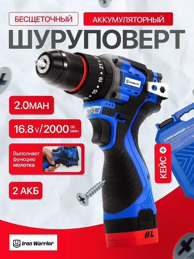 шуруповёрт с двумя аккумуляторами бесщеточный 16.8в