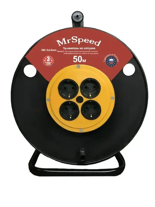 Силовой удлинитель на пластиковой катушке ПВС ТУ 3х2,5 mm 50 Метров/ 4 Розетки/ С/З