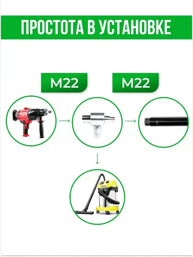 Система пылеудаления для алмазных коронок резьба М22-M22 Адаптер для инструмента Насадка Пылеотвод