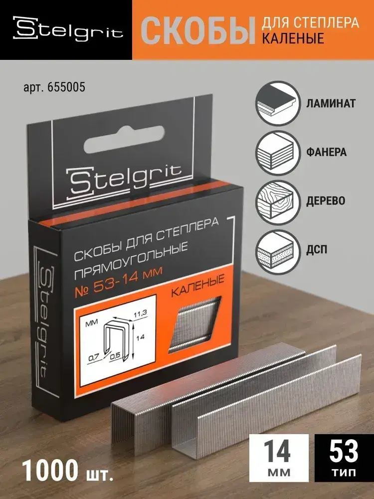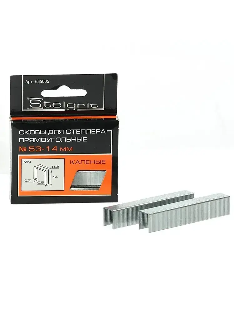 Скобы Тип 53 для строительного/мебельного степлера каленые 14x0,7x11,3 мм 1000 шт Stelgrit